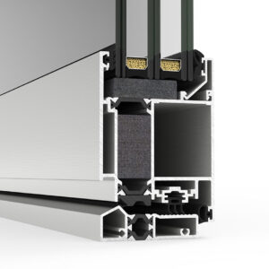 Coplanar door entry system with straight lines and frame depth of 70 mm. It allows for the set up of an emergency exit with anti-panic devices according to EN 179 & EN 1125 regulations. Resistance to repeated openings and closings (EN 1191:2000) : 1,000,000 cycles.