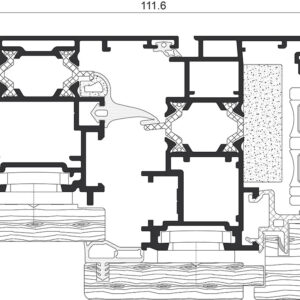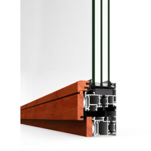 Système mixte aluminium-bois à rupture thermique et profondeur de dormant de 66,4 mm, qui maintient l’utilisation d’un accessoire standard avec possibilité de triple régulation et de fixation frontale. Avec une esthétique similaire et des performances thermiques et acoustiques améliorées que la version antérieure de ce système, il s’agit d’une fenêtre plus économique qui facilite sa fabrication, en simplifiant cette phase et en réduisant les temps nécessaires d’élaboration de 15-20 %. Il est formé par les profilés extérieurs en aluminium assemblés par des barrettes de polyamide de 14.6 et 16 mm qui configurent une zone de rupture thermique qui améliore remarquablement son isolement thermique, en arrivant à atteindre des valeurs de coefficient de transmission thermique de fenêtre de 1.1 (W/m²K). L’union des châssis extérieurs en aluminium et des moulures intérieures en bois est réalisée de deux manières : au moyen d’une fixation indépendante avec brides (elle permet la substitution des moulures et la possibilité de traitements de finitions du bois différenciés des fournis d’habitude) et au moyen d’un assemblage avec un joint en EPDM. Dans les deux cas, cet ensemble assure l’absorption parfaite de différentes dilatations de ces matériels.